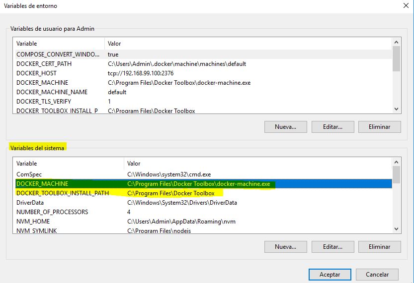 至少在我的例子中,所发生的事情是没有为系统创建环境变量DOCKER_MACHINE和DOCKER_TOOLBOX_INSTALL_PATH。