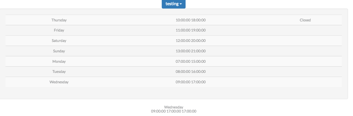 我试图显示的一天,时间和状态的商店,如果他们是开放的或没有。我想显示当前的日期、时间和状态作为下拉框的标题,当用户单击该框时,他们看到的是一周中的其他日子、时间和状态。我在下拉框中的数据运行良好,但是头文件不能正常工作。请看屏幕截图