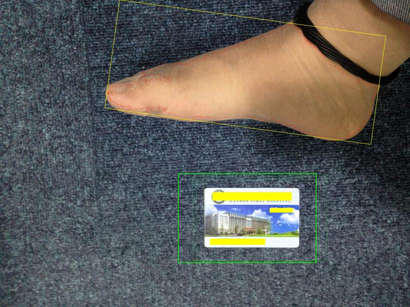 例如:我照了一张照片如下。我测量的脚的长度是22.4cm。照片中脚的像素长度为2137.6。卡的像素长边为763.14,因此footL =24 of。这个结果是不精确的。如何提高测量精度?