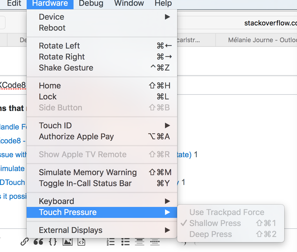 有人能告诉我是否可以用Xcode 8 iOS模拟器来模拟3 3DTouch吗?