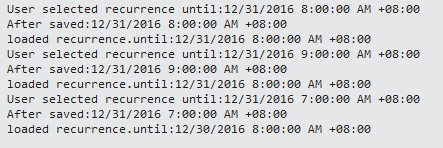 Recurrence.Until预约保存:"2016-12-31T01:00:00+01:00“