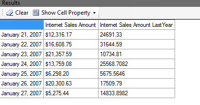MEMBER [Measures].[Internet Sales Amount LastYear] AS