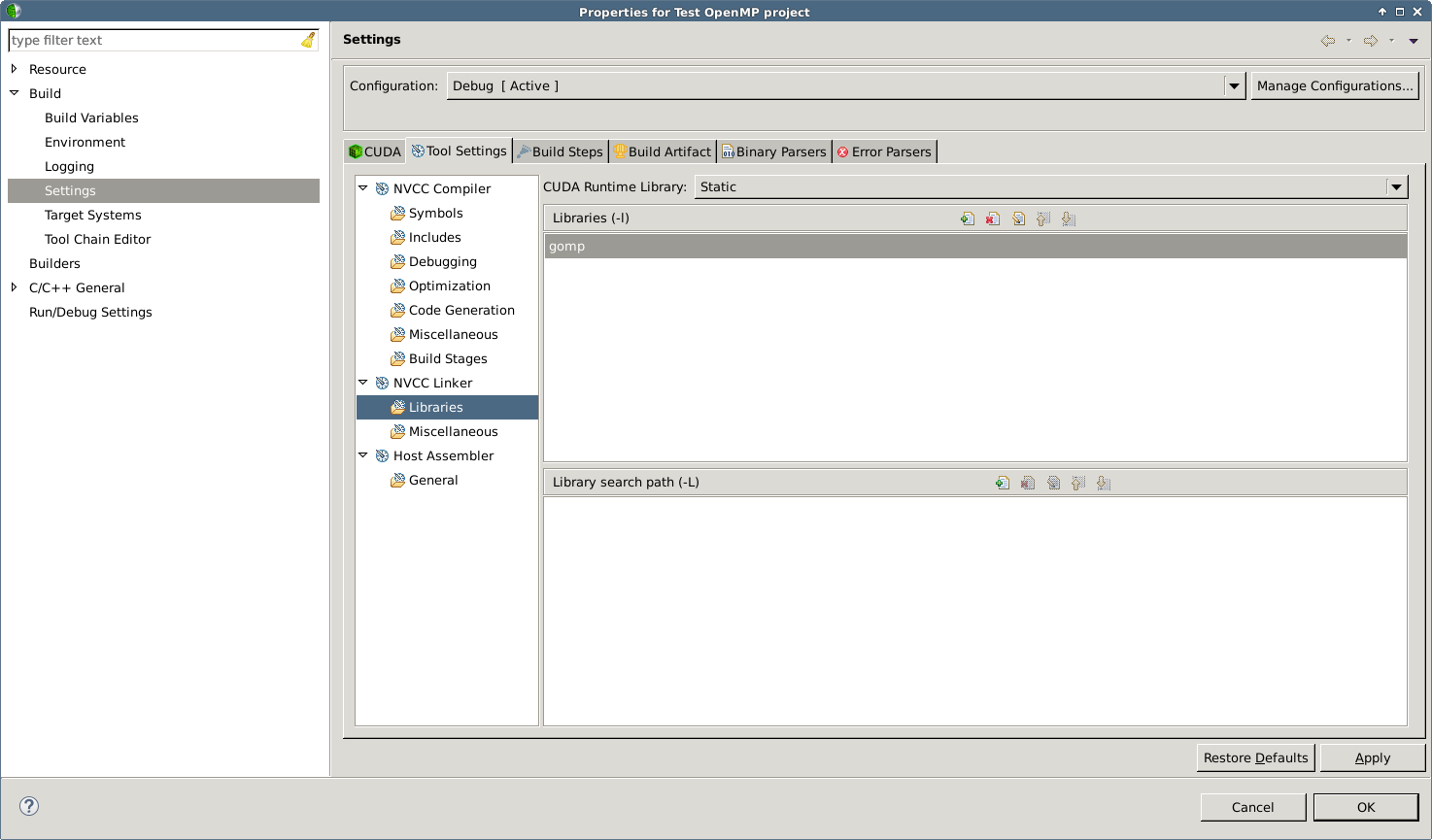 我的代码包含一些OpenMP参数,我无法成功地编译它们,因为我不知道如何配置Nsight来使用OpenMP。