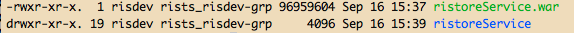 编辑:我找到了一个tomcat进程,它与部署war的文件夹相关联。它确实是由risdev运行的,他应该拥有对这些文件的权限。