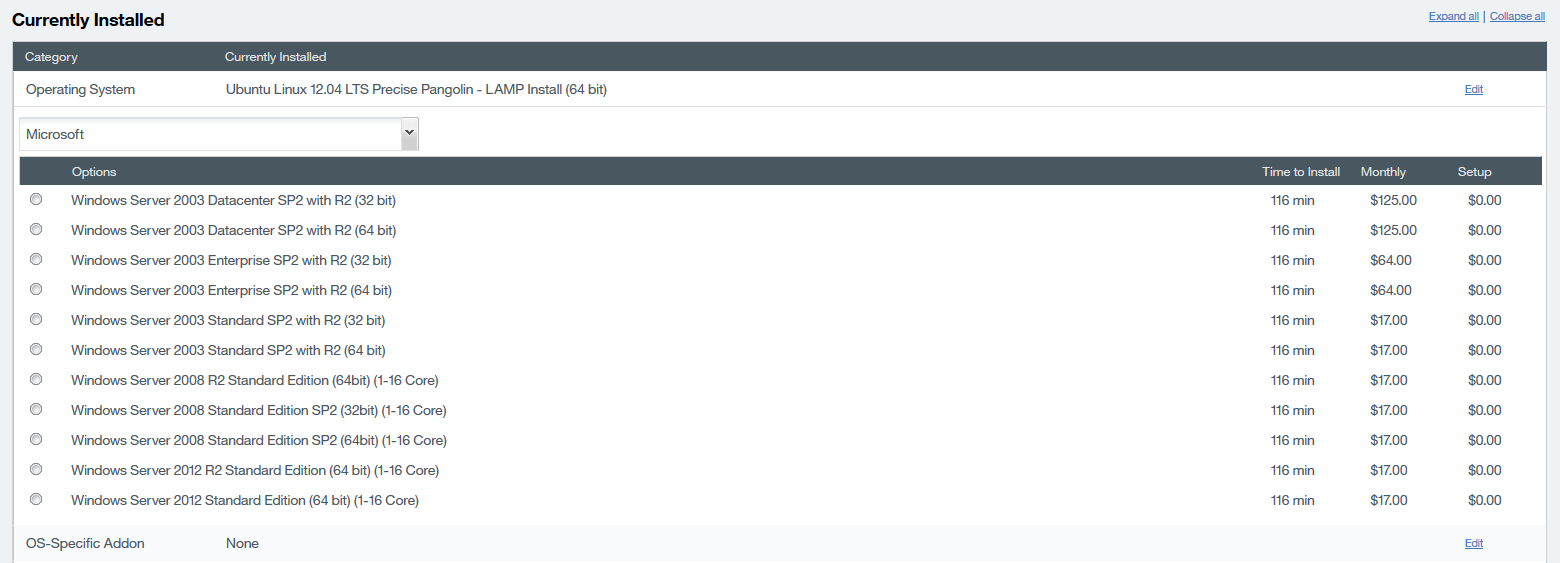 String[] manufactures = {"CentOS", "Citrix", "CloudLinux", "Debian", "FreeBSD", "Microsoft", "Other", "Parallels", "Redhat", "Ubuntu", "VMware", "Vyatta"};