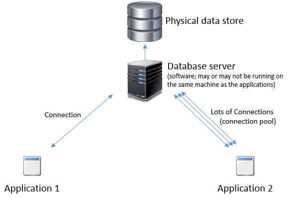 如果您更新来自一个应用程序的数据,您将通过与数据库服务器的连接发送一条消息,以更改数据存储区中的数据。提交的更改对任何其他应用程序都是立即可见的,因为它们都使用相同的数据库(即相同的物理数据存储)。