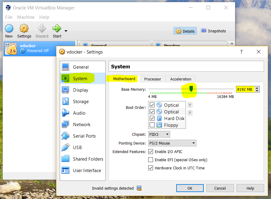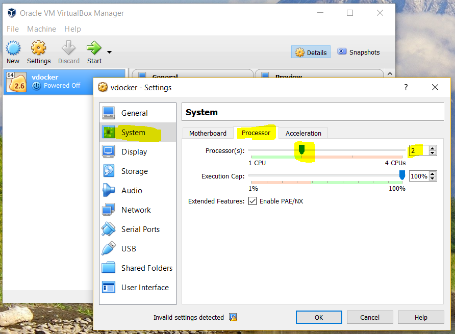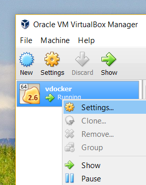 注:在对系统设置进行任何更改之前,必须关闭VirtualBox。( jlarsch) 使用以下命令停止VM: 码头-机器停止vdocker