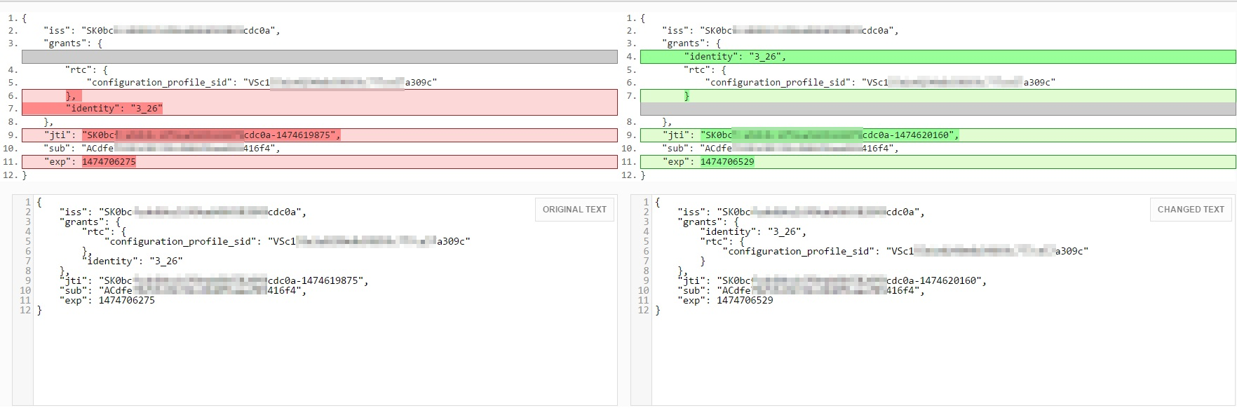 如果我们解码JWT令牌(一个来自服务器,另一个在本地生成),我们将看到创建时间和过期时间的不同: