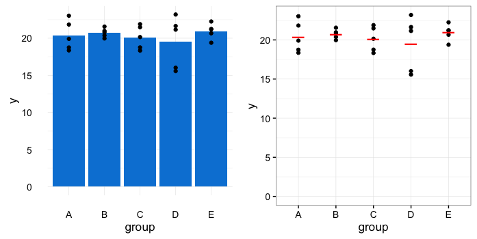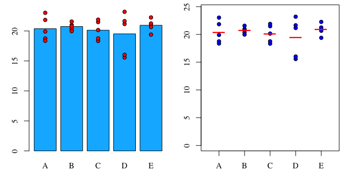 points(rep(x, table(dat$group)), dat$y[order(dat$group)], pch=21, bg="red")