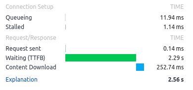 以下是同一请求的TTFB: