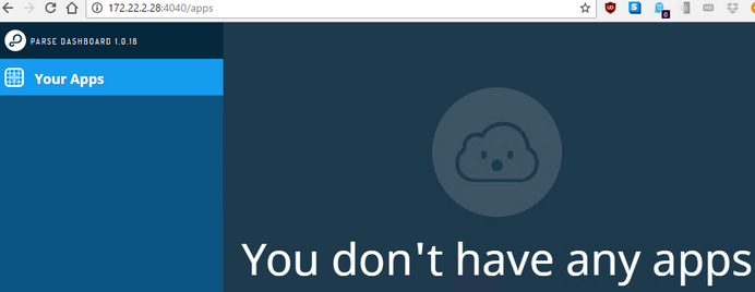 当我在浏览器http://192.168.2.28:4040/apps中打开仪表板时,它会询问我所配置的用户名和密码。成功登录后,我看到错误消息:You don't have any apps。但是,解析仪表板应该会看到一个名为testerdb的应用程序正在运行。我相信我有错配置,但我不知道这可能是什么。