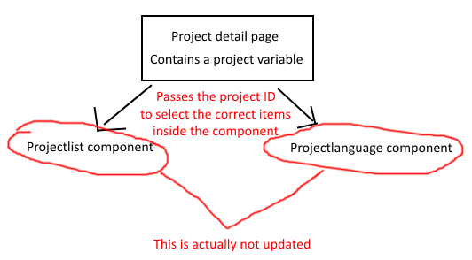 问题:当我进入项目详细信息页面时,一切都是正确的。但是,当我切换项目变量(通过使用页面上的导航)时,依赖项组件不会更新,它们不会得到正确的项目ID。