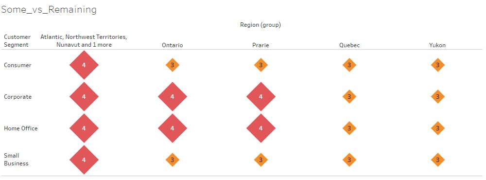 相反,我只能在没有安大略省、普拉里、魁北克和育空地区的情况下创建小组,这违背了将某些地区与区域总数进行比较的目的。