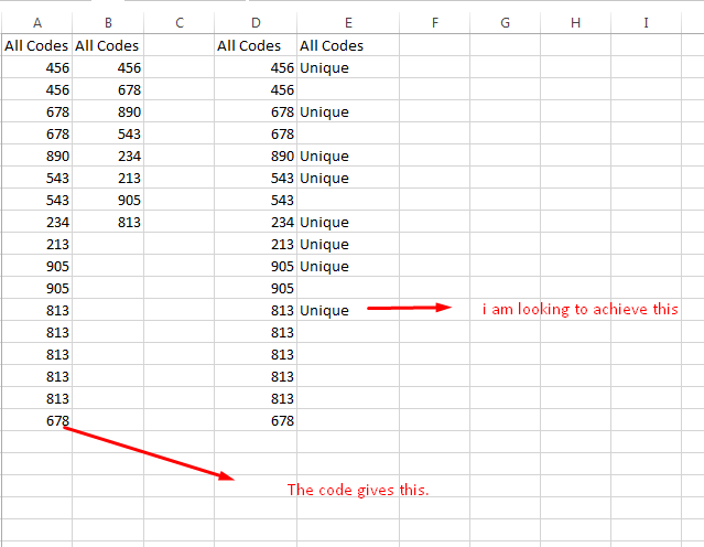 我正在寻找唯一的格式给出在右侧。我在一个论坛网站上找到了VBA代码,但这个并不适合我。有没有办法修改代码或者写一些更好的东西。我确实有一个公式,但公式是相当资源密集的,一个非常大的excel加载非常慢。