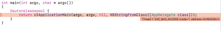 * thread #1: tid = 0x11d655, 0x35deaf56 libobjc.A.dylib`objc_msgSend + 22, queue = 'com.apple.main-thread', stop reason = EXC_BAD_ACCESS (code=1, address=0xf632d5c1)