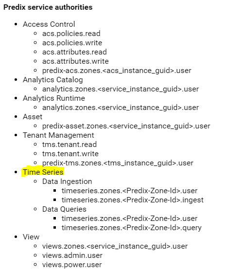 您是否向您的UAA客户更新了时刻表权限?要插入具有特定用户或客户端的时间序列数据,需要有权限。为了获得许可,您需要在您的UAA客户端中添加权限。