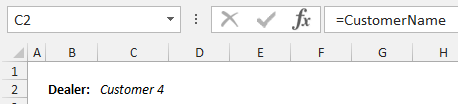 .Cells(2, 3).Formula = "=CustomerName" 'Change as required