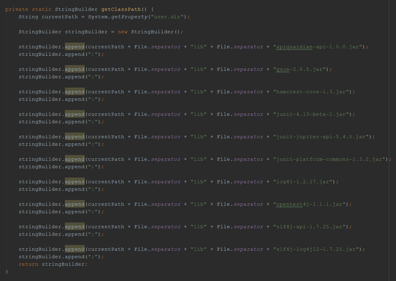 [-classpath, /C:/Users/dev/Automacao/workspace/.metadata/.plugins/org.eclipse.wst.server.core/tmp0/wtpwebapps/test/WEB-INF/classes/;/C:/Users/dev/Automacao/workspace/.metadata/.plugins/org.eclipse.wst.server.core/tmp0/wtpwebapps/test/WEB-INF/lib/commons-io-2.5.jar;/C:/Users/dev/Automacao/workspace/.metadata/.plugins/org.eclipse.wst.server.core/tmp0/wtpwebapps/test/WEB-INF/lib/InMemoryJavaCompiler-1.2.jar;/C:/Users/dev/Automacao/workspace/.metadata/.plugins/org.eclipse.wst.server.core/tmp0/wtpwebapps/test/WEB-INF/lib/javax.faces.jar;]我怎么能得到同样的结果?
