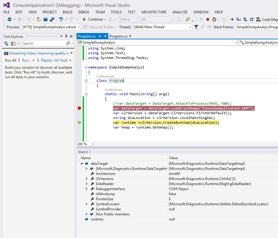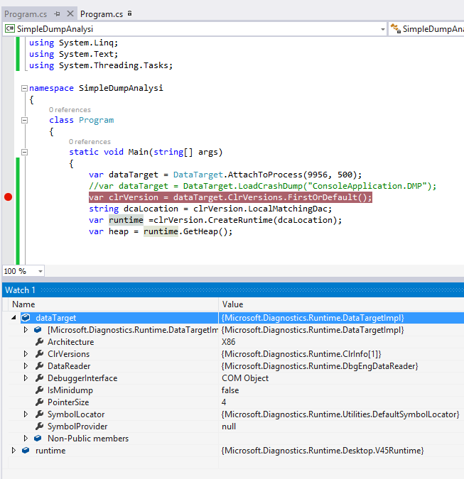 不知道这是什么时候的区别。我在拉屎的时候是不是漏了什么东西。请告诉我如何将转储加载到CLRMD中。