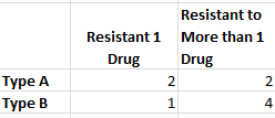 在某些情况下,我试图计算对1或1+抗生素的耐药情况。下面是我的电子表格的一个示例: