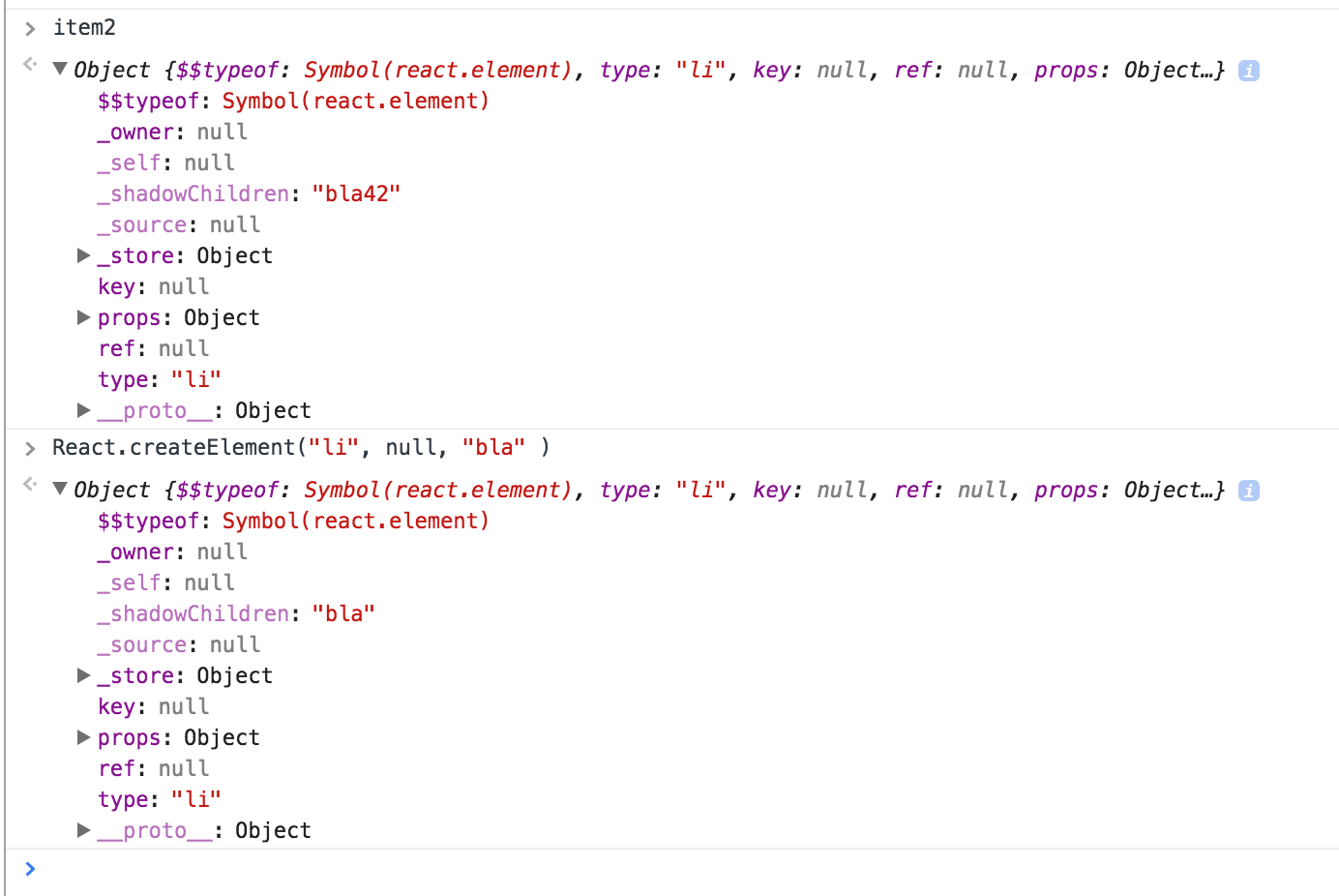 通过在浏览器中检查item2和React.createElement("li", null, "bla42" )来确认: