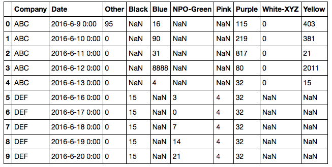 # Company Date Value Black Blue NPO-Green Pink Purple White-XYZ Yellow