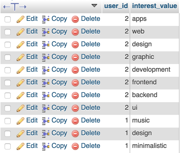 经过大量的研究,我现在决定分享我的问题,也许可以得到一些指导。我有4个表,“用户”,发布“,”关键词“,”。“关键字”表包含"post_id"和“兴趣”表包含"user_id"和