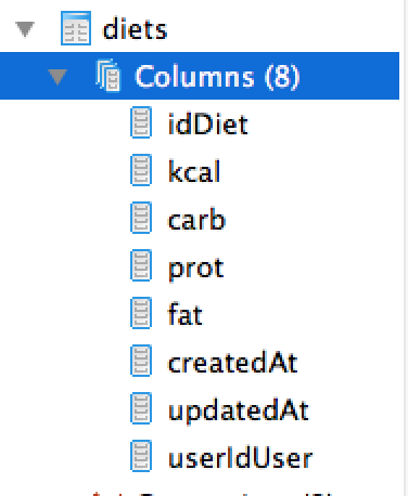 ERROR: column "diets.createdAt" does not exist我对这两张桌子的计划: