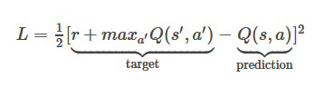 Set Q-value target for action to r + γmax a’ Q(s’, a’) (use the max calculated in step 2). For all other actions, set the Q-value target to the same as originally returned from step 1, making the error 0 for those outputs.