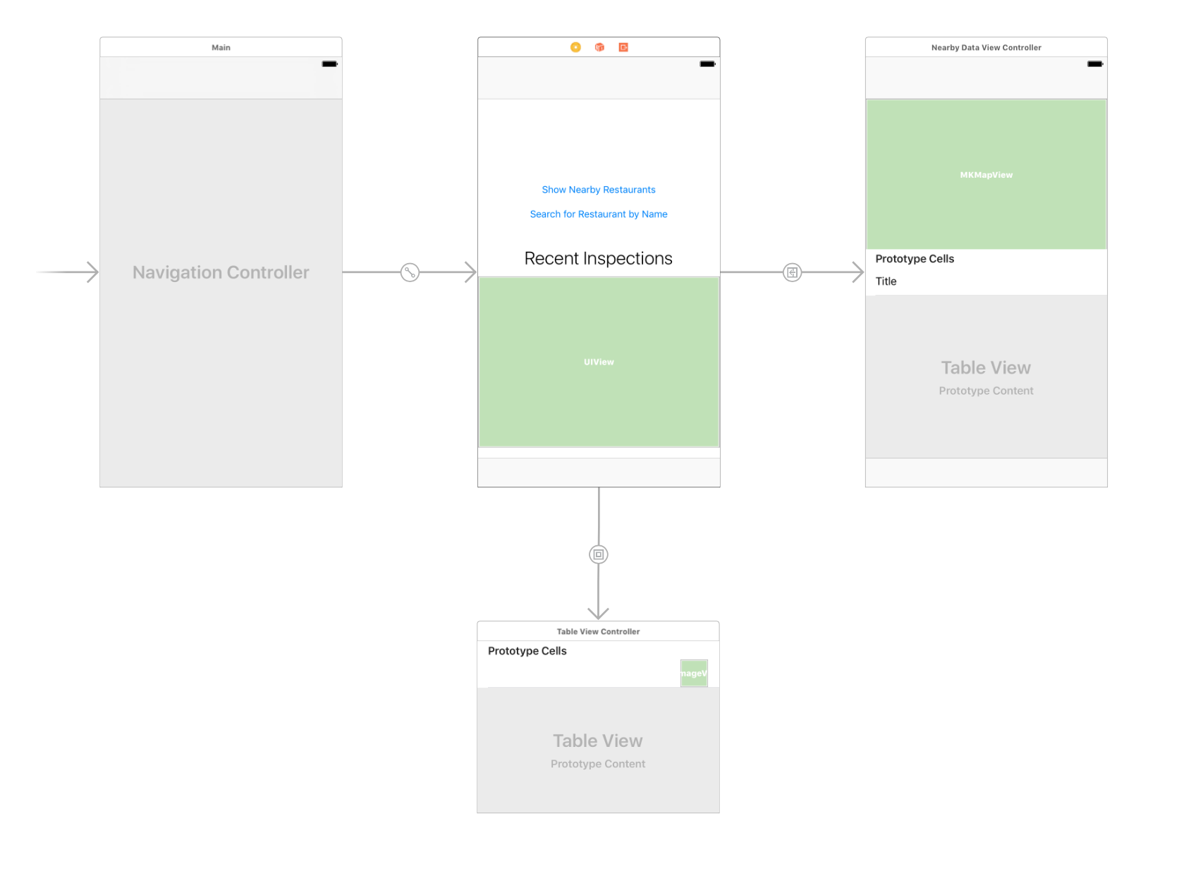 NearbyDataViewController是UITableViewController的子类,它要求它的根视图是UITableView,这显然不是,因为您在那里也有MKMapView。