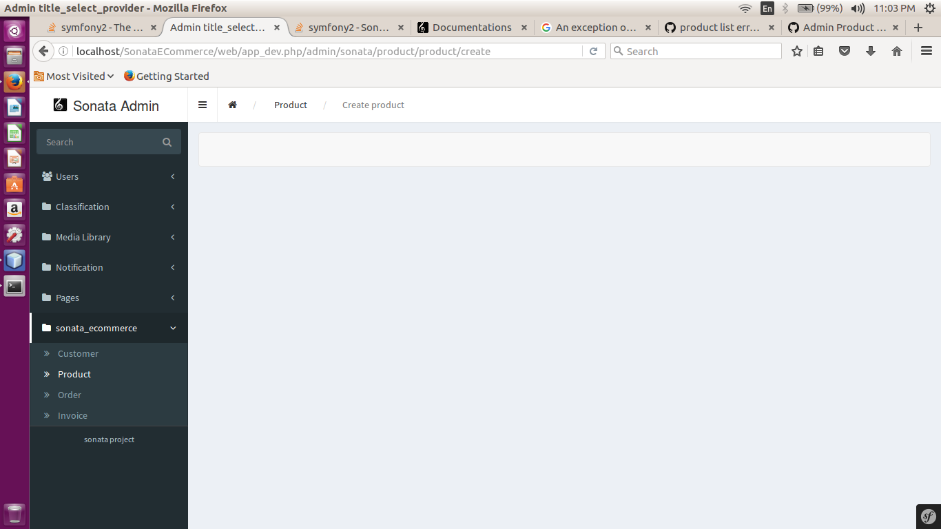 注意:不要忘记导入sonata_product.yml(文档中没有提到这一点)。添加-{ config.yml的资源: sonata/sonata_product.yml }