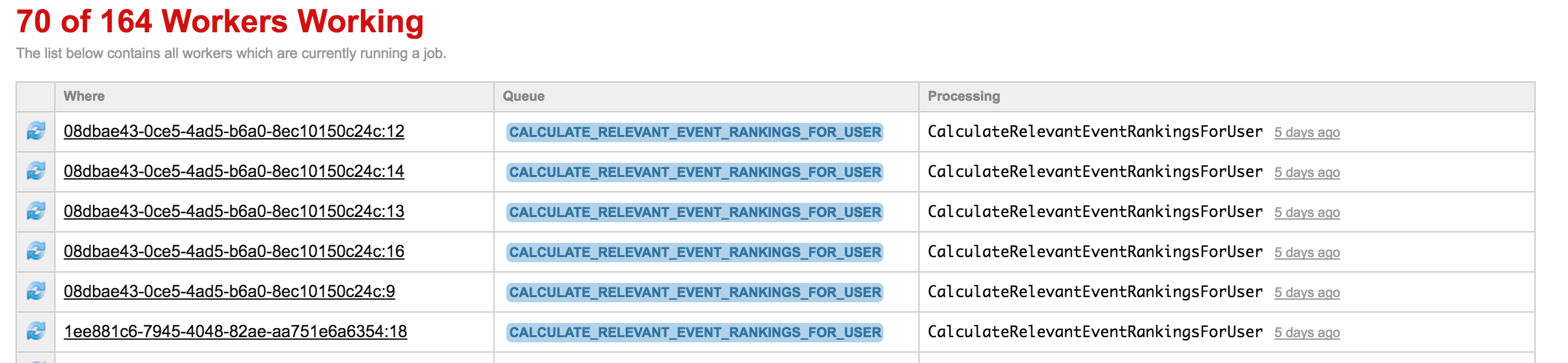 我有一份可能需要5分钟的背景工作。我刚刚检查了我的Resque队列,发现"75名工人在工作“,尽管这些工人几天前就开始工作了。