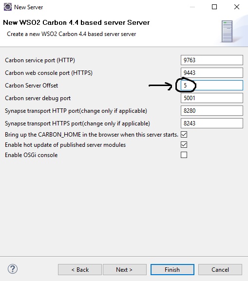 下面是该步骤的屏幕截图,同时将新服务器添加到eclipse中,我将偏移量作为5。但是当我启动服务器的时候,它会从9443开始。