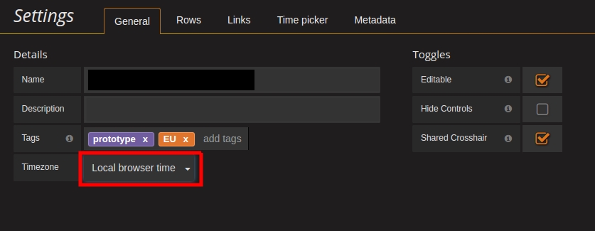 Telegraf和influxdb都使用UTC作为默认时区。据我所知,你不能为他们设置另一个时区。您想要做的只是在grafana中使用“本地浏览器时间”选项。