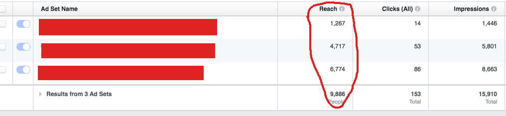 insights/?ids=[**ad_set_ids**]&fields=impressions,clicks,reach,actions,total_actions我可以把每个广告集的数字加起来,以得到总数,除了“到达”之外,它是很好的,因为到达的总数不只是加在一起(见下图)。