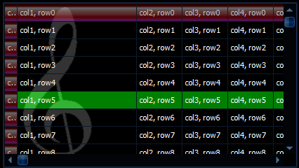 在这个职位的启发下,我首先创建了一个具有背景图像的TStringGrid。然后,我为所选的单元格添加了一个使用WinApi.Windows.AlphaBlend()的转换颜色,对于固定的单元格也添加了类似的颜色。最终的结果是: