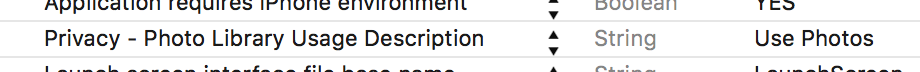 <key>NSPhotoLibraryUsageDescription</key>