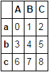 df = pd.DataFrame(np.arange(9).reshape(3, 3), list('abc'), list('ABC'))