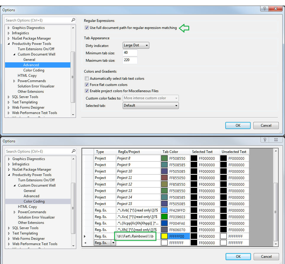 如何根据包含以下内容的文件路径给代码选项卡着色?: