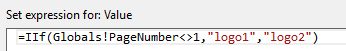 =IIf(Globals!PageNumber<>1,logo1,logo2)在“图像”文件夹中的“报表数据”部分中,标识作为logo1和logo2嵌入。