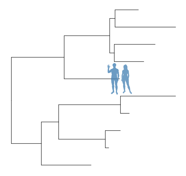 geom_nodelab(aes(image=phylopic), geom="phylopic", alpha=.5, color='steelblue')