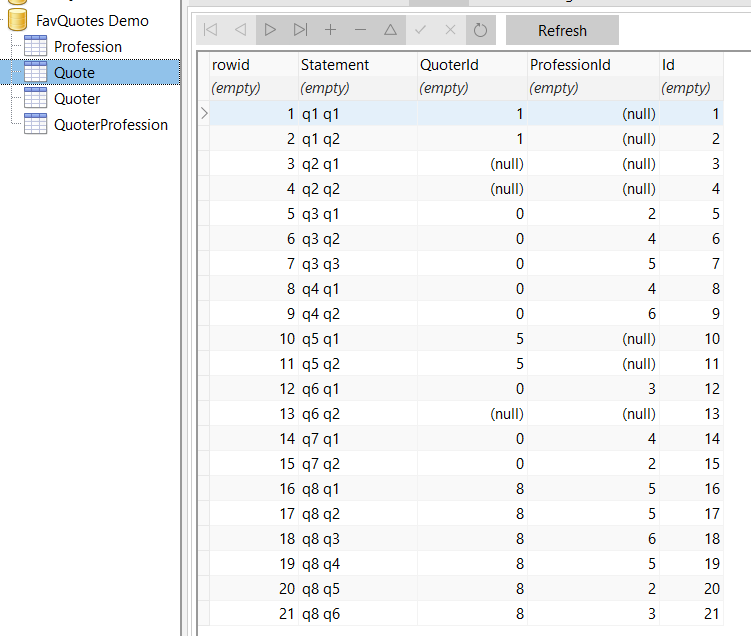 new Quote {Statement = "q1 q1", Profession = Professions[0]},