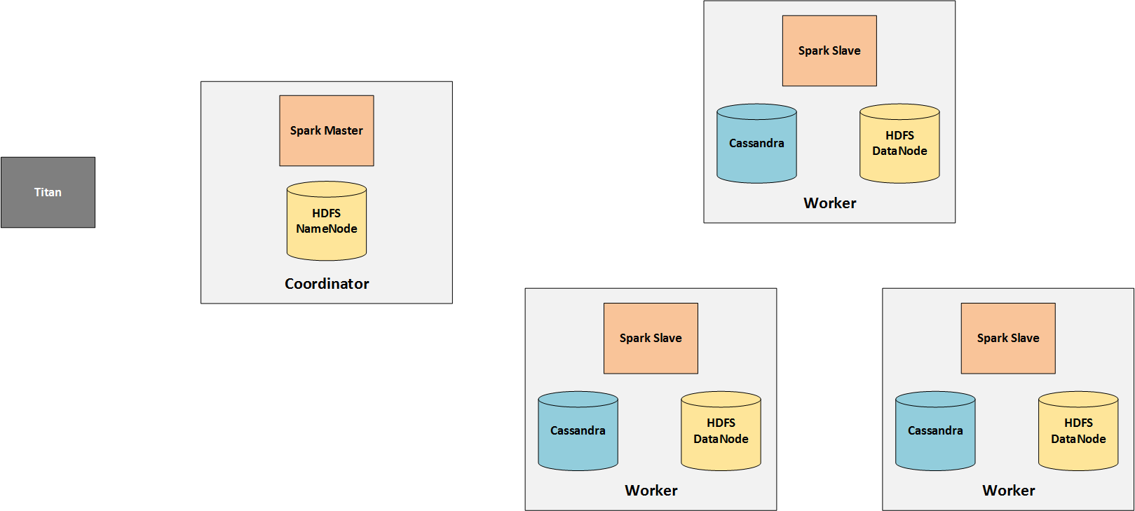 根据我在“星火”、“泰坦”和“卡桑德拉”的文档中发现的信息,这样的最小设置如下所示: