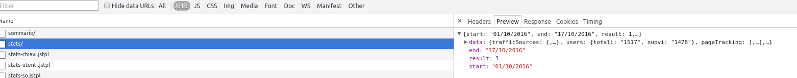 首先,检查您的响应,您应该在chrome dev tools的“网络”选项卡中看到它。