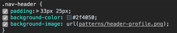 .nav-header和侧边栏中的其他元素使用background-image,这些图像是不透明的,没有显示背景色。为此,您需要检查(并重置)侧栏中项的background-image属性。