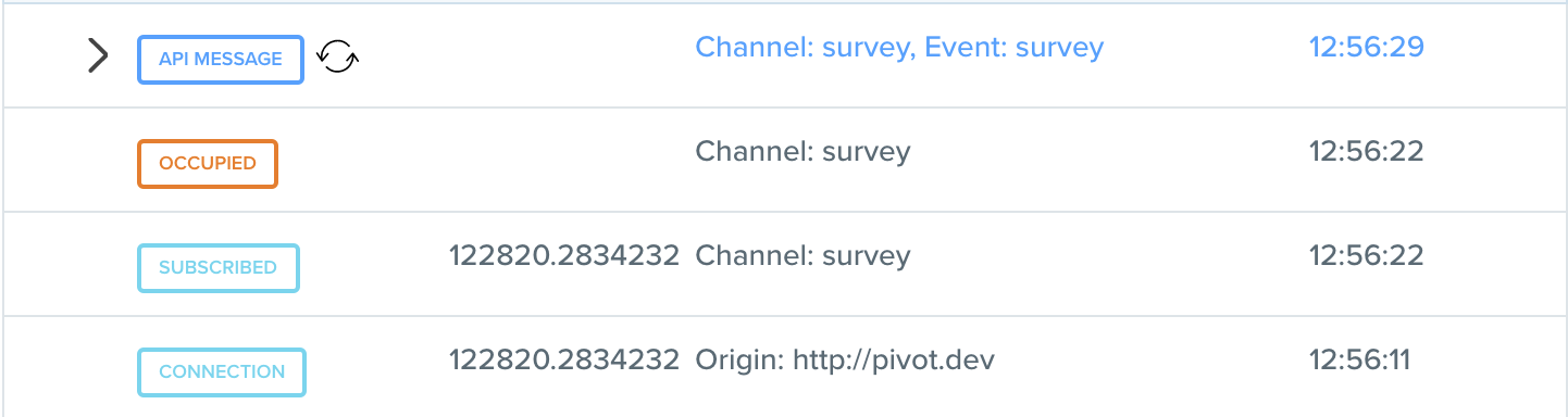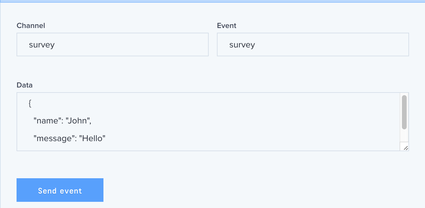 Echo.channel('survey').listen('survey', function(e) { console.log('test'); });然后我和推手联系并发送一个事件。