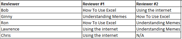 它不是最可伸缩的解决方案(如果您的审查员数量过高,但是不管审阅者的名称有多少,它都能工作。