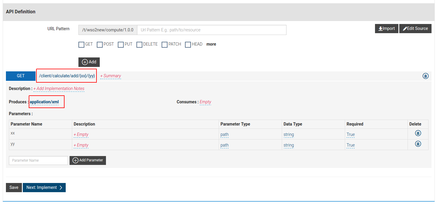 此外,还必须将资源的"Produces“属性设置为"application/xml”,因为默认值是"application/json“,后端不支持它。