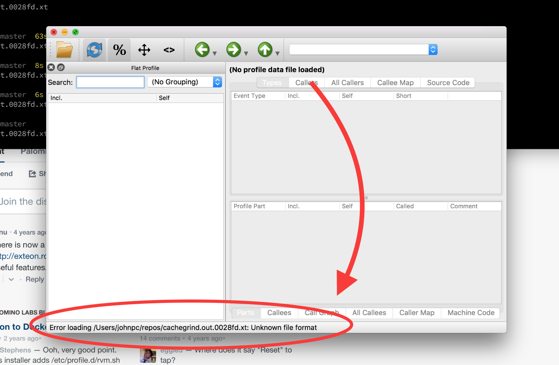 错误消息是:“加载/path/to/cachegrind/file:未知文件格式时出错