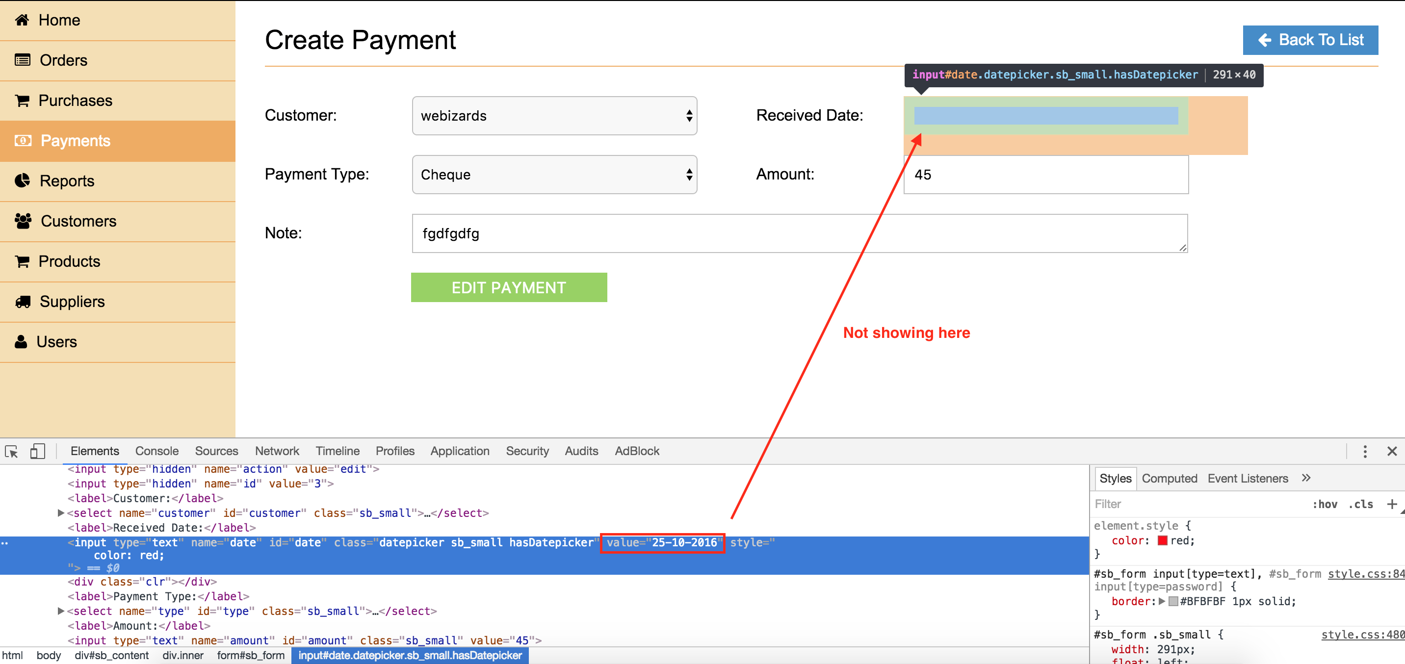 如果您没有从$('# date ').val()获得值,那么后端存在问题,日期不是来自后端。如果输入字段中有值,如
